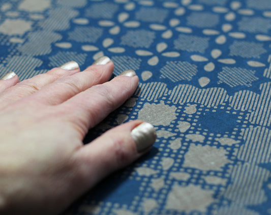 African Hand Dyed Indigo Stripe Damask