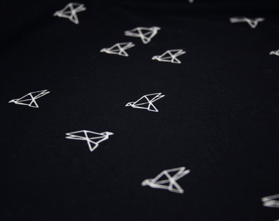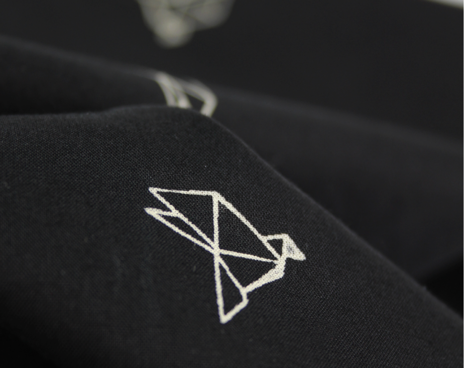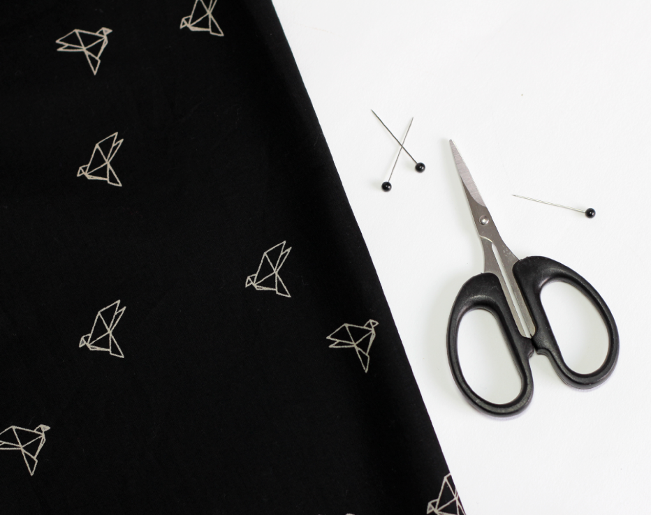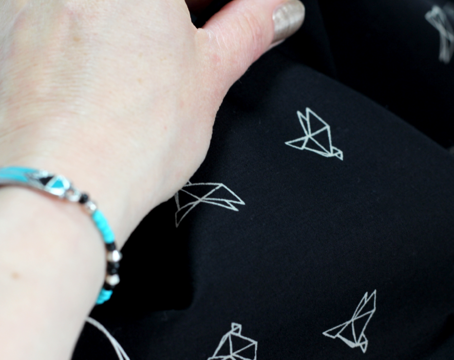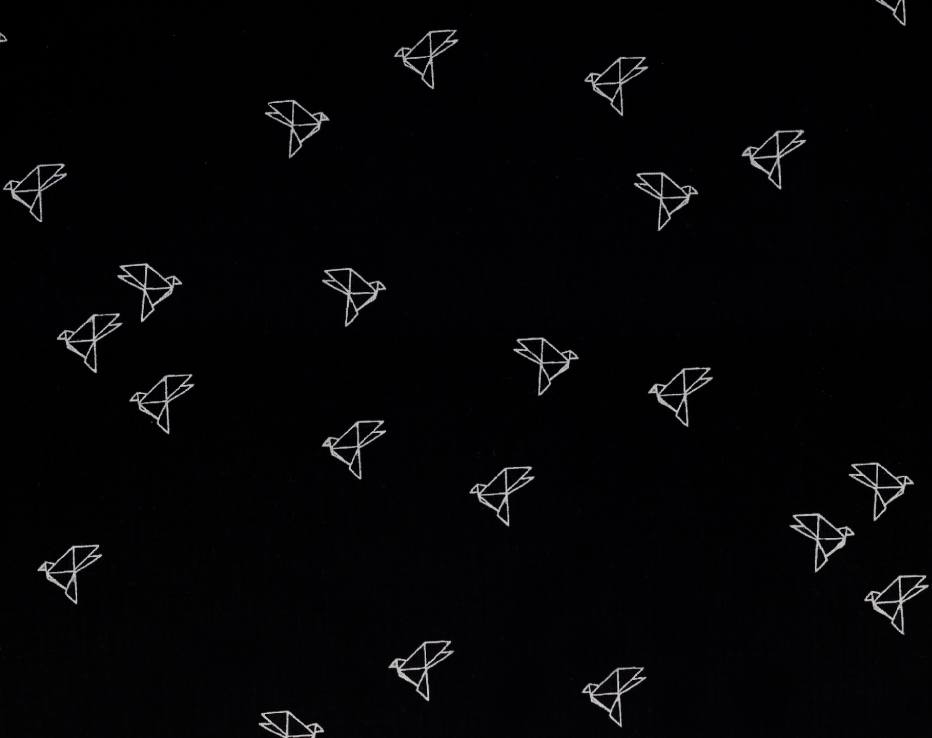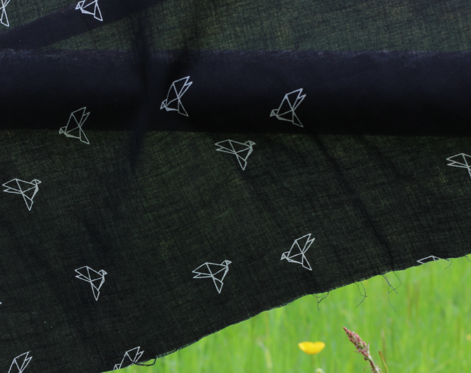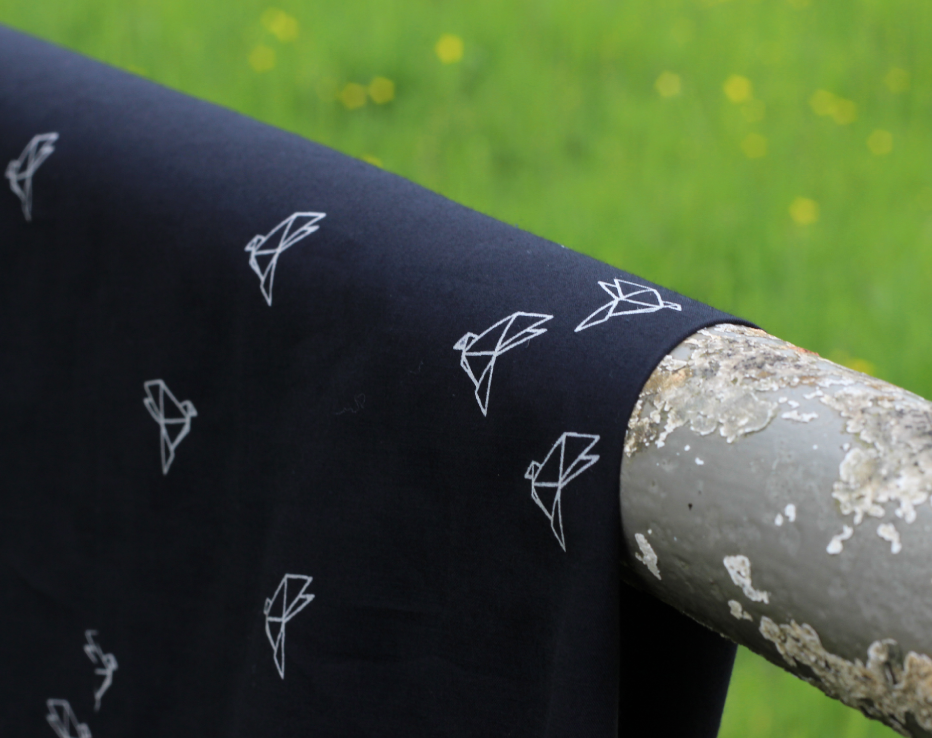 A light and lush fabric by Atelier Brunette. This is one of my all time favourite fabrics that had to be included in the Faberwood launch series. The simple design of origami birds set beautifully on black cambric cotton. I love geometric design and even more when it's placed a bit randomly like this. Perfect summery goodness which works well as a dress that I made last year. Every time I where this it lifts my mood whatever season we're in.