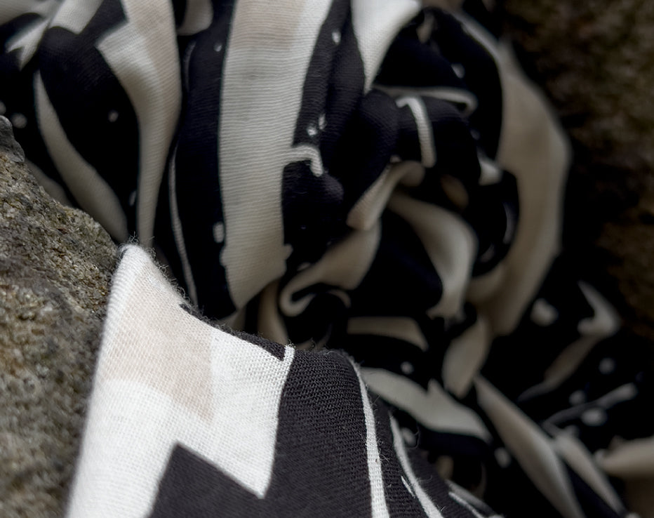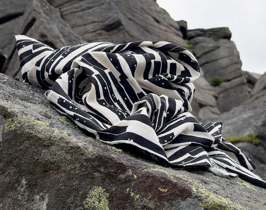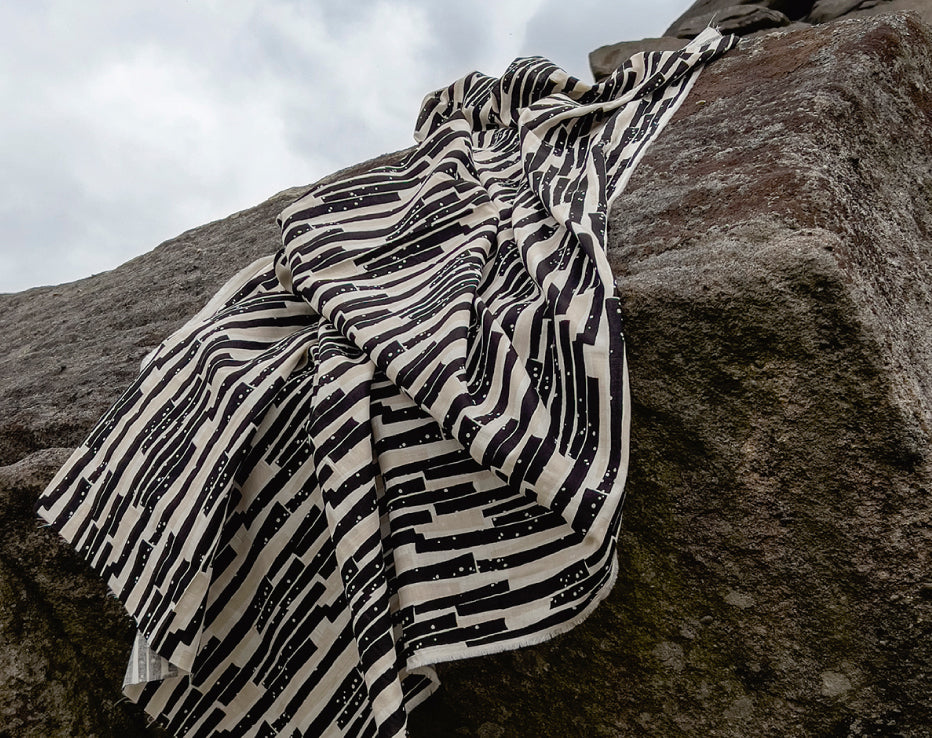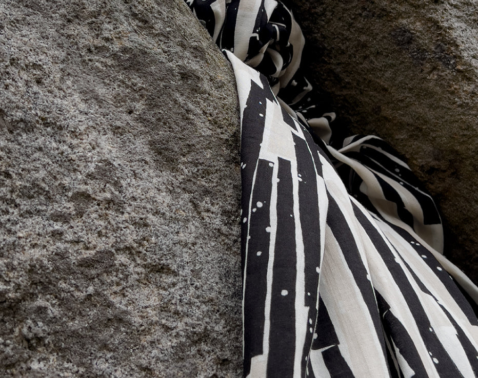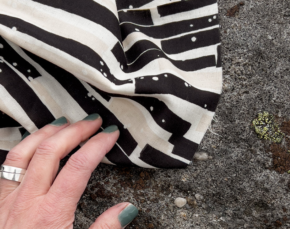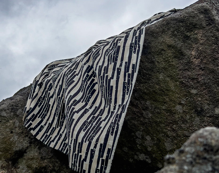 Bringing another wonderful double gauze to our collection for Summer by Kokka Echino. Double gauze has a wonderful airy feel consisting of two layers of light voile pin stitched together. It has quite a relaxed feel perfect for most styles of clothing, working well for achieving volume on even the most simple designs. A simply beautiful fabric with a fresh and timeless edge to it, I love the vertical abstract stripes which have a block print look about them, and nice wearable neutral tones.