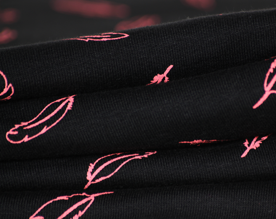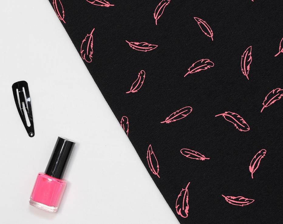 This light sweatshirting by Aime Comme Marie feels absolutely gorgeous! The fabric is made and printed in France in a traditional textiles factory using Oeko Tex Certified inks (no harmful chemicals) and the print quality is stunning. I can feel the ever popular Linden sweatshirt pattern coming on as I type! In different lights the pink shade can look strong or subtle and the feathers really do float on this jet black jersey. We also feature this wonderful feather design on a linen, but it looks so different here. This one will be neatly waiting on my sewing desk ready for Autumn!
