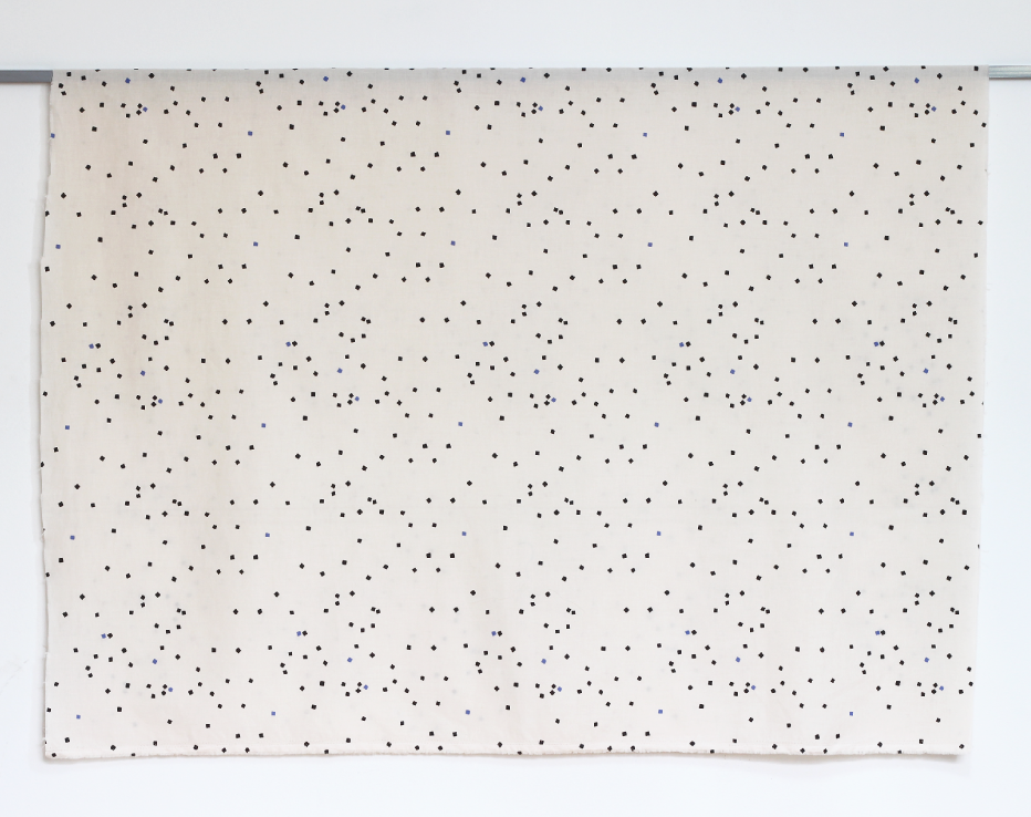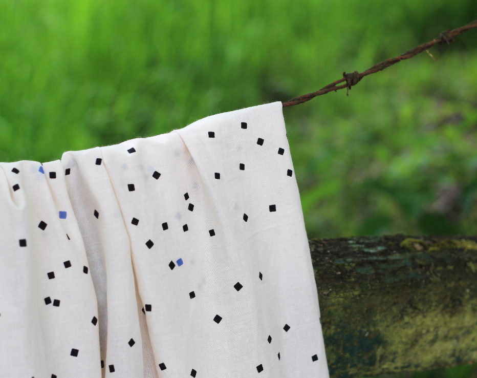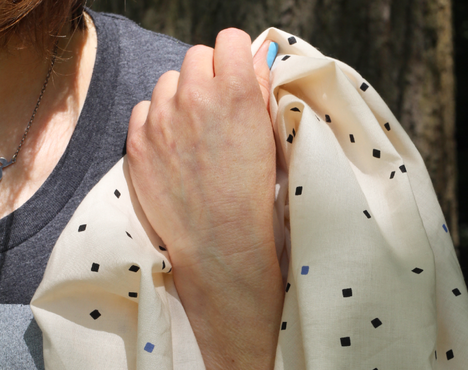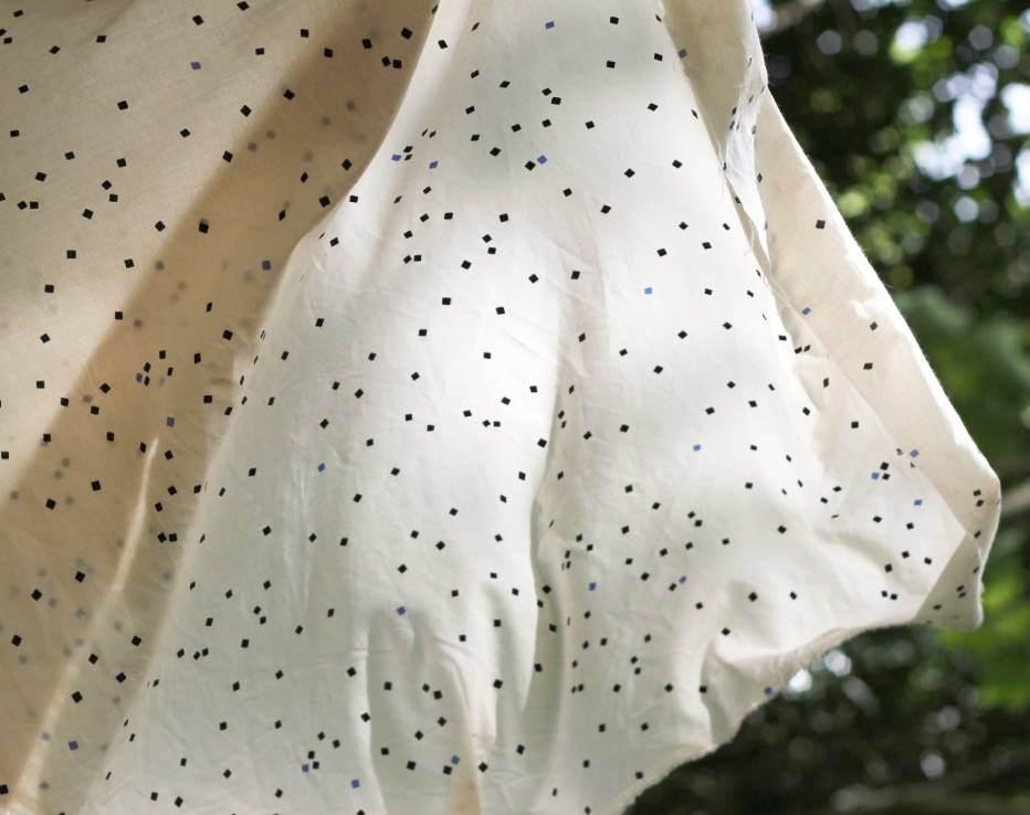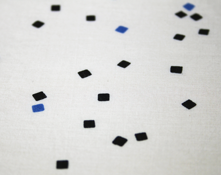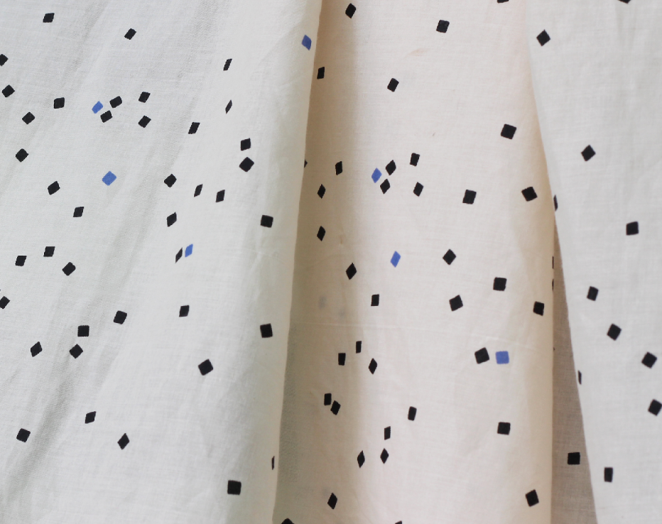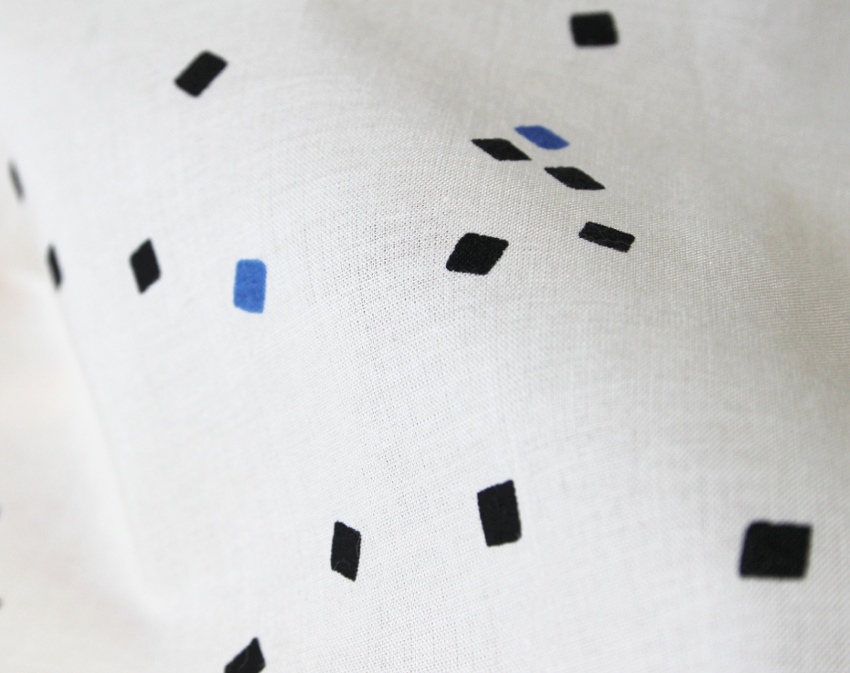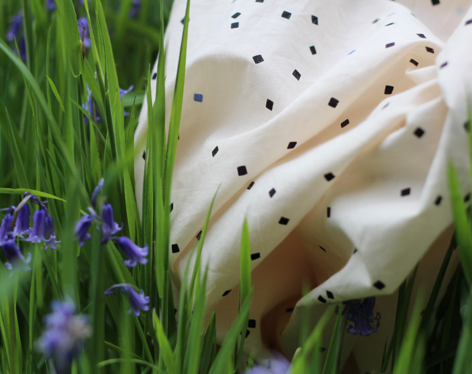 From a distance this fabric has a look of dots but come closer and it's little squares with rounded corners, these kind of little details make me happy. The black squares and a little 'bluebell' blue one thrown in here and there, just lusherama, is that a word? Base colour is off white, though I would describe this as a more buttery tone and 100% cotton cambric that has a similar feel to a voile. With this gorgeous density I'm thinking of a shirt or a but it would also make fantastic dresses. So desperate to start sewing with this one!