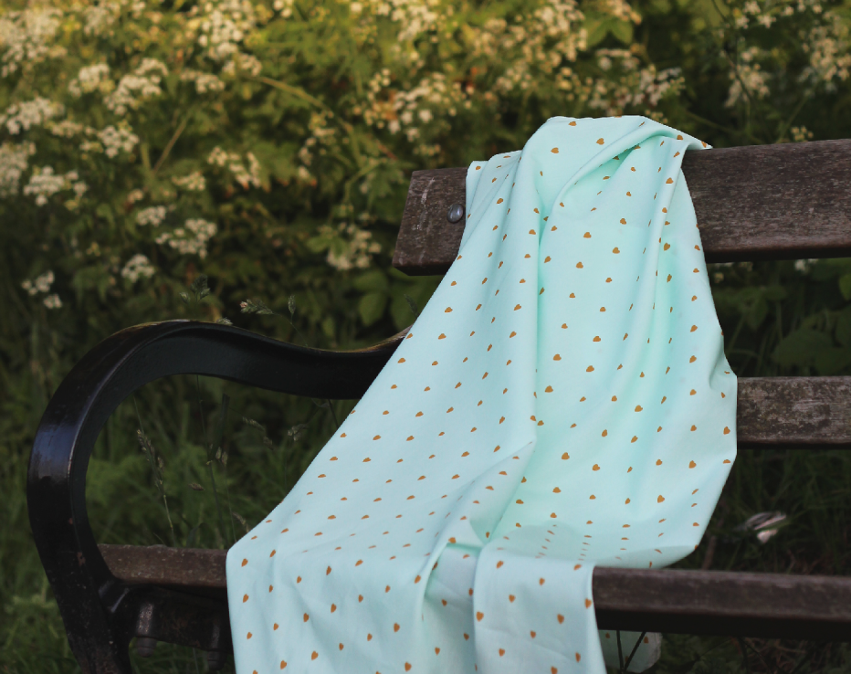 An exclusive to Faberwood I'm so excited by this fabric which oozes quality! It is 100% Organic medium weight cotton Certified by Ecocert Green Life and designed by Auguste de Pénélope from France. The colours of minty greeness and the printed hearts are in a warm mustardy gold, this poplin style fabric has a really nice structure and feels just gorgeous! You could make anything from clothing to home decor it is truly stunning. I'm looking forward to working with this simple design, not sure what I'll make yet so watch this space.