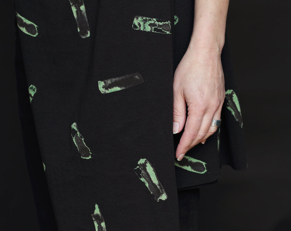 It's been far too long since we've had a fresh Finnish fabric and I love this! An intriguing zesty coloured rocks design expertly printed onto a moody black base (that's not a stark black, it's more smoky). You can always guarantee the best fabric from this lifestyle brand Aarrelabel they collaborate with different designers to bring these cutting-edge ideas.