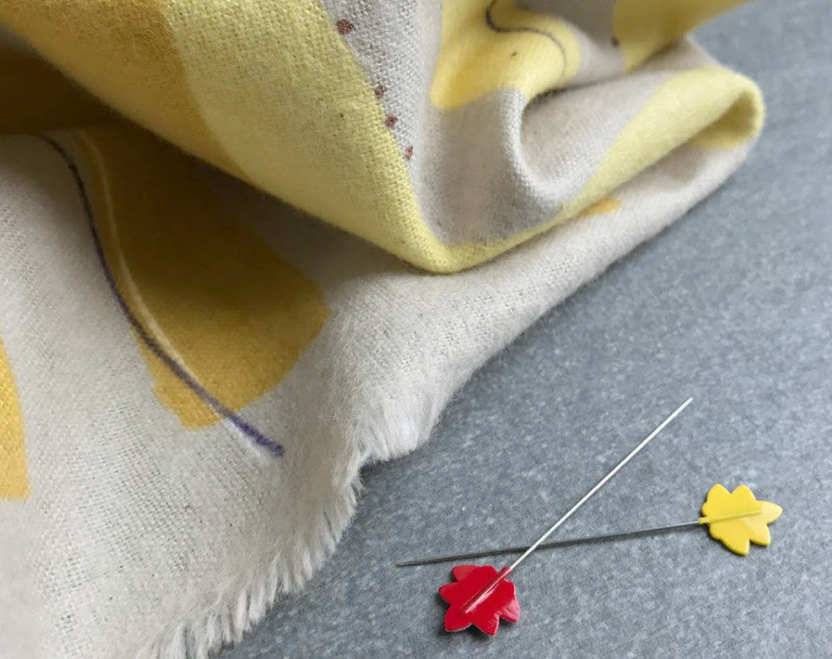 I chose this brushed cotton because it's not something I've come across before from Japan, it has a gorgeous feel that's substantial but not quite as heavy as a flannel. Look closely and you'll see a tiny, discrete line of copper metallic dots printed through the design that make the design even more special.