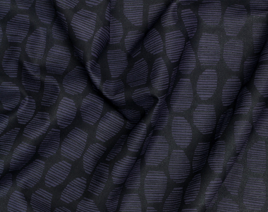Ever the epitome of understated style, Atelier Brunette always has my attention. Welcome a fabric that comes alive in the daylight. On first glance this design and colour way is extremely subtle (that’s why I love it), the loveliness of the design takes time to develop. The photographs taken outdoors show how the colours become enlightened! A crisp and gorgeous viscose with a very slight sheen on it, with a gorgeous geo pattern (I know I say that a lot!) The deep blue shows shadows of purple undertones, think dark shadows under moonlight and you’re on the right track! This fabric would work for many projects, I’m thinking of a shirt or a dress...