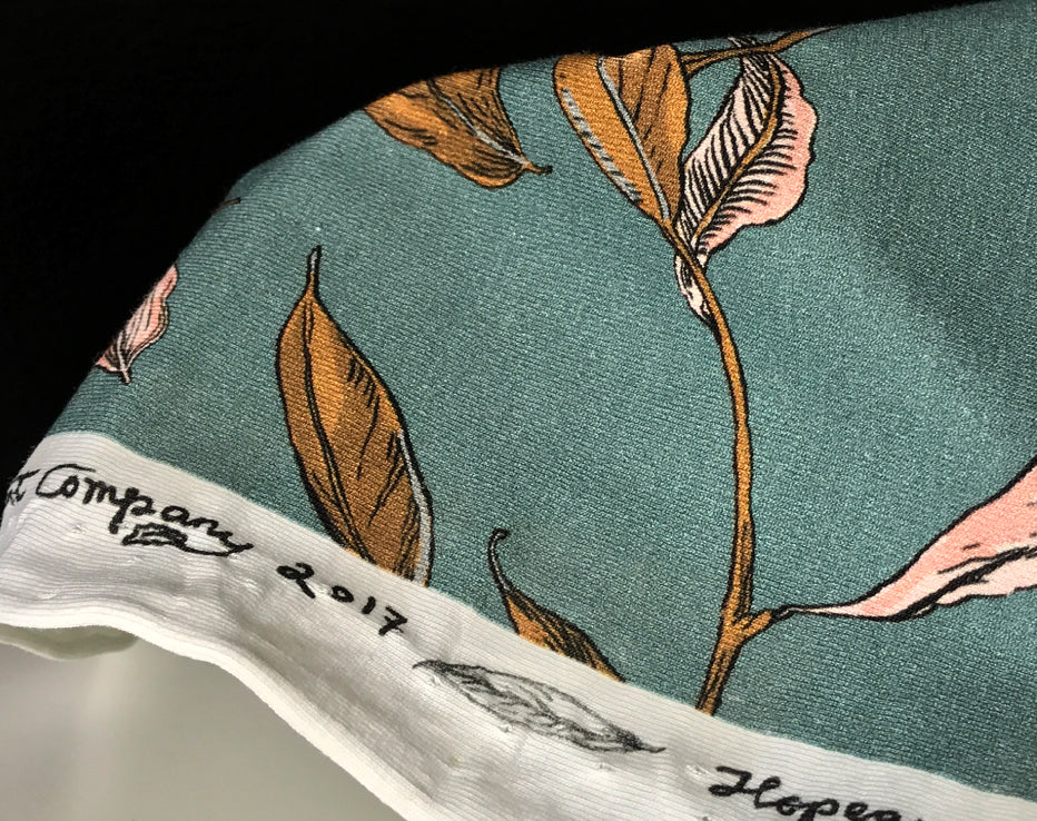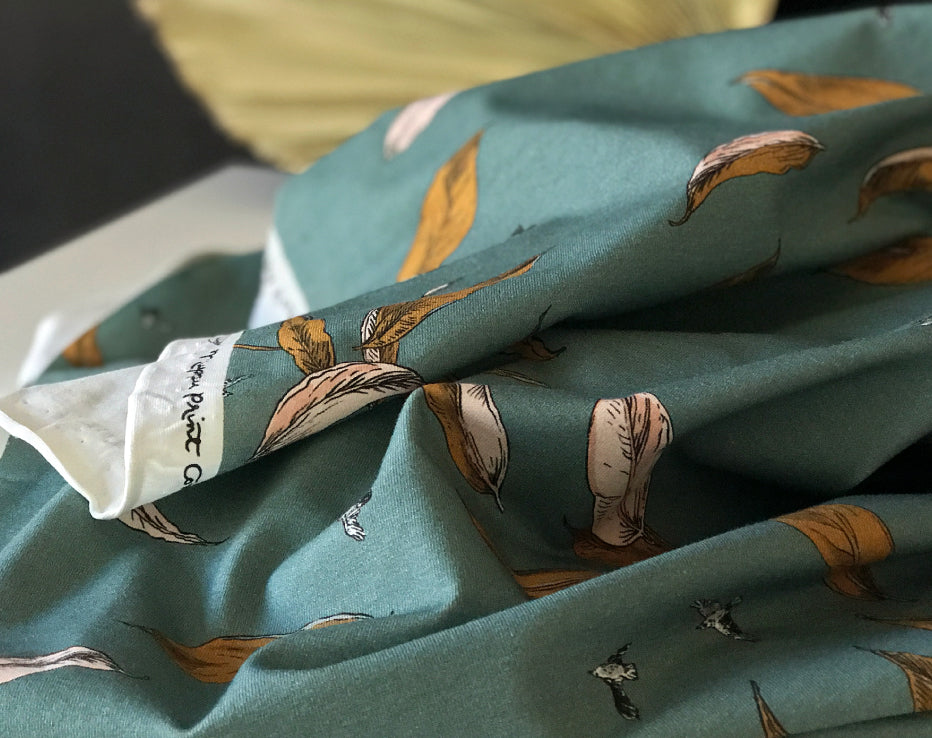 Just cast your eyes on this colour and absorb for a while... It looks like nature's dream cascading over artistic lushness! The combination of real art on fabric and the hand-drawn attention to detail is stunning, such a unique Finland style. I love the teal blue combined with mustard (and the pretty pastel tones thrown in). I can talk about this one non-stop! A tunic style top would be nice or a dress, I even think you could make something designed for wovens, just because it's a stretch doesn't mean you're restricted to tees!