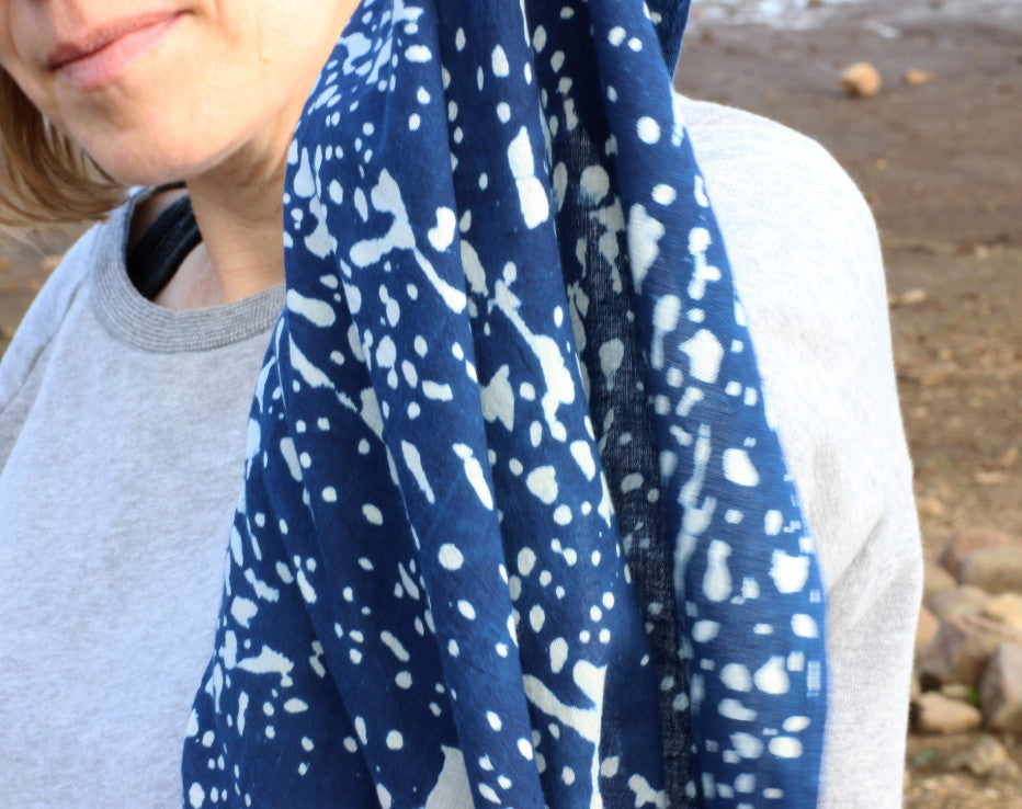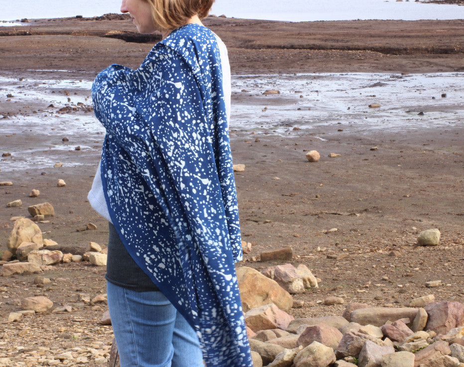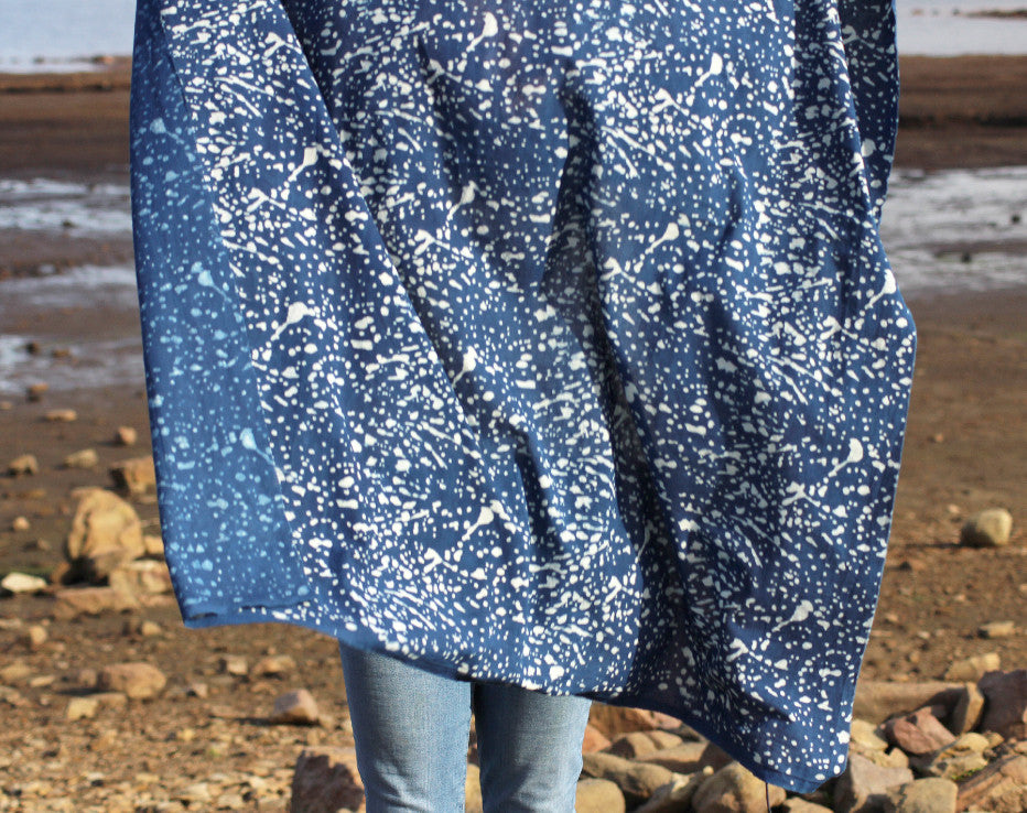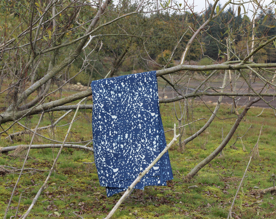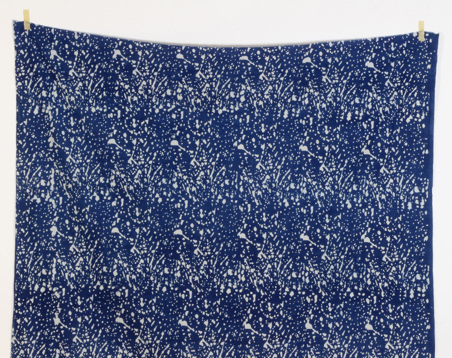 So I have to contain myself with this one! Is it splashes, splatters or spots? Amazing colour of indigo blue in this unique hand block and hand dyed fabric from India. This unique pattern is pretty abstract, not sure what else to say, other than it's awesome and it also gets a thumbs up from my 14 year old daughter! A medium weight cotton with a fab raw feel, totally natural. Due to the traditional dyeing technique it is advisable to cold wash it first before using to set the dyes. You could make something very special here, to be honest I don't think these designs are going to come around very often!