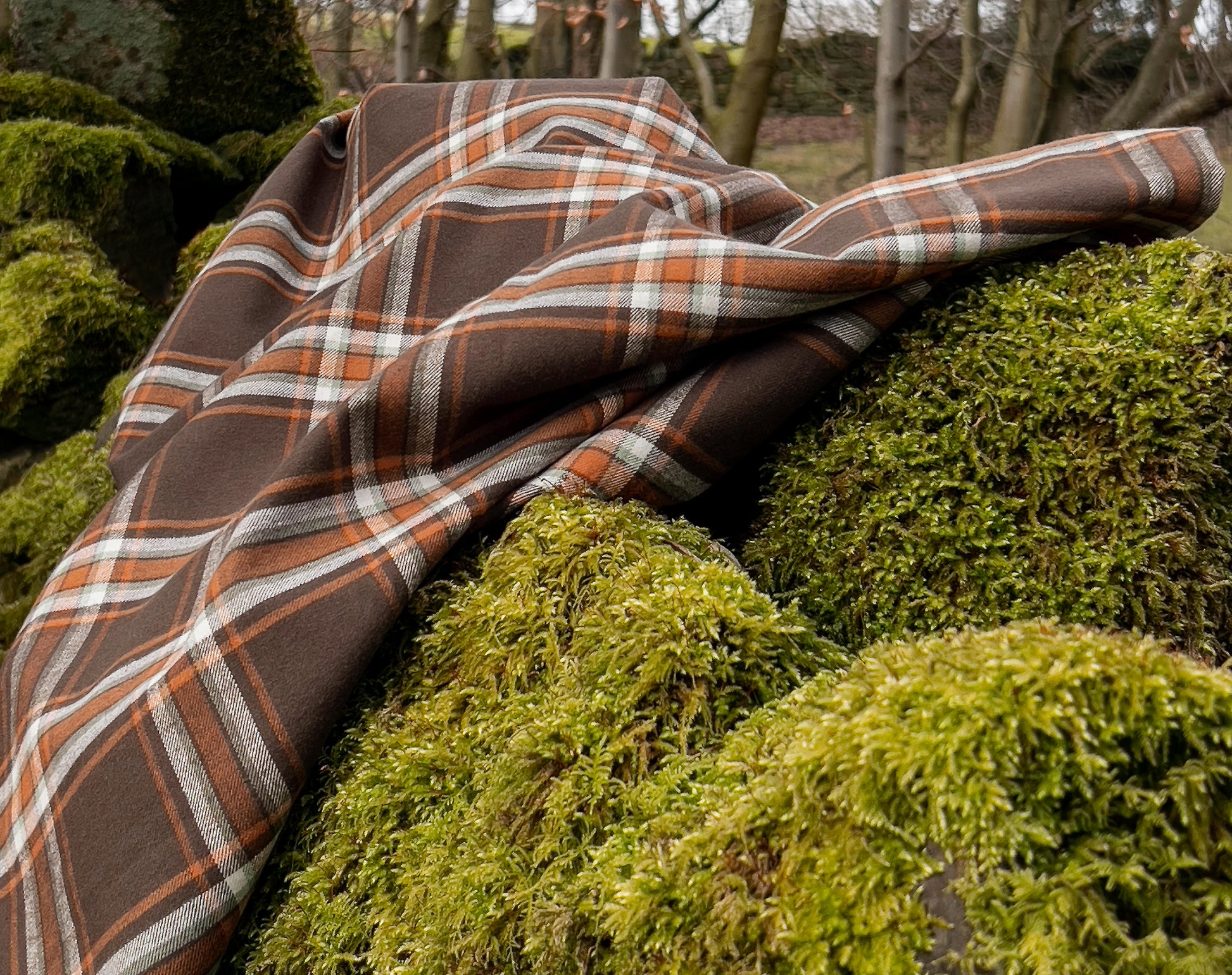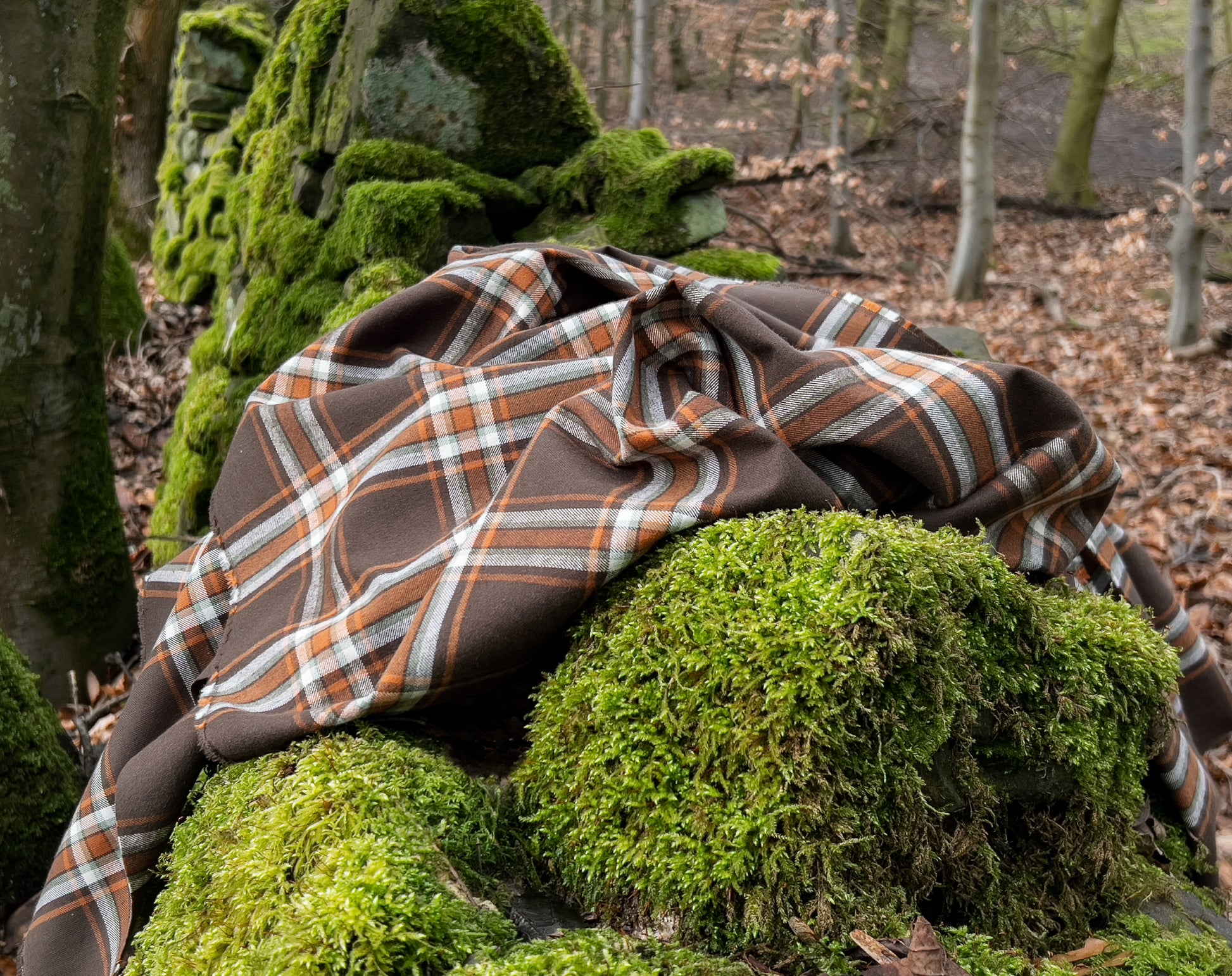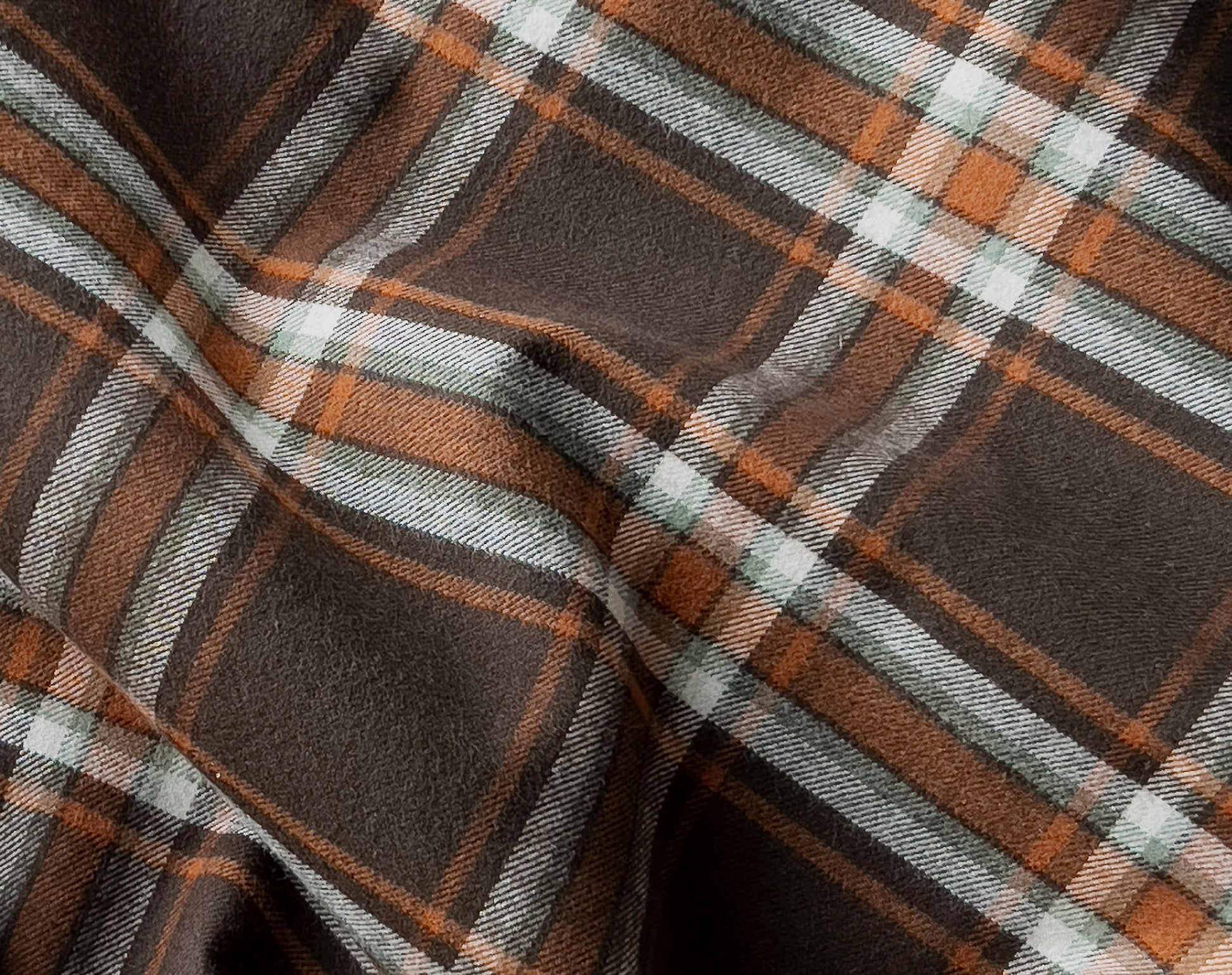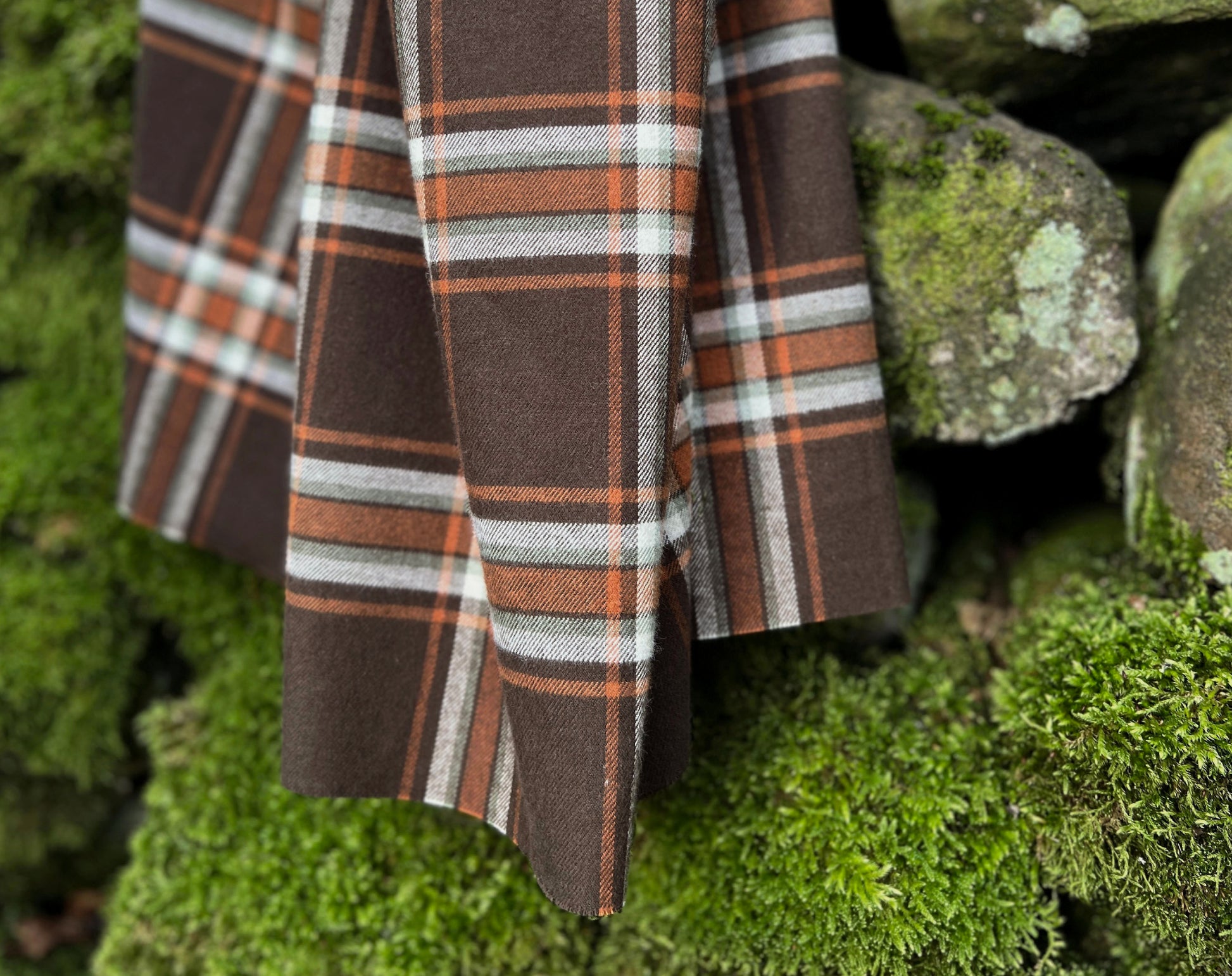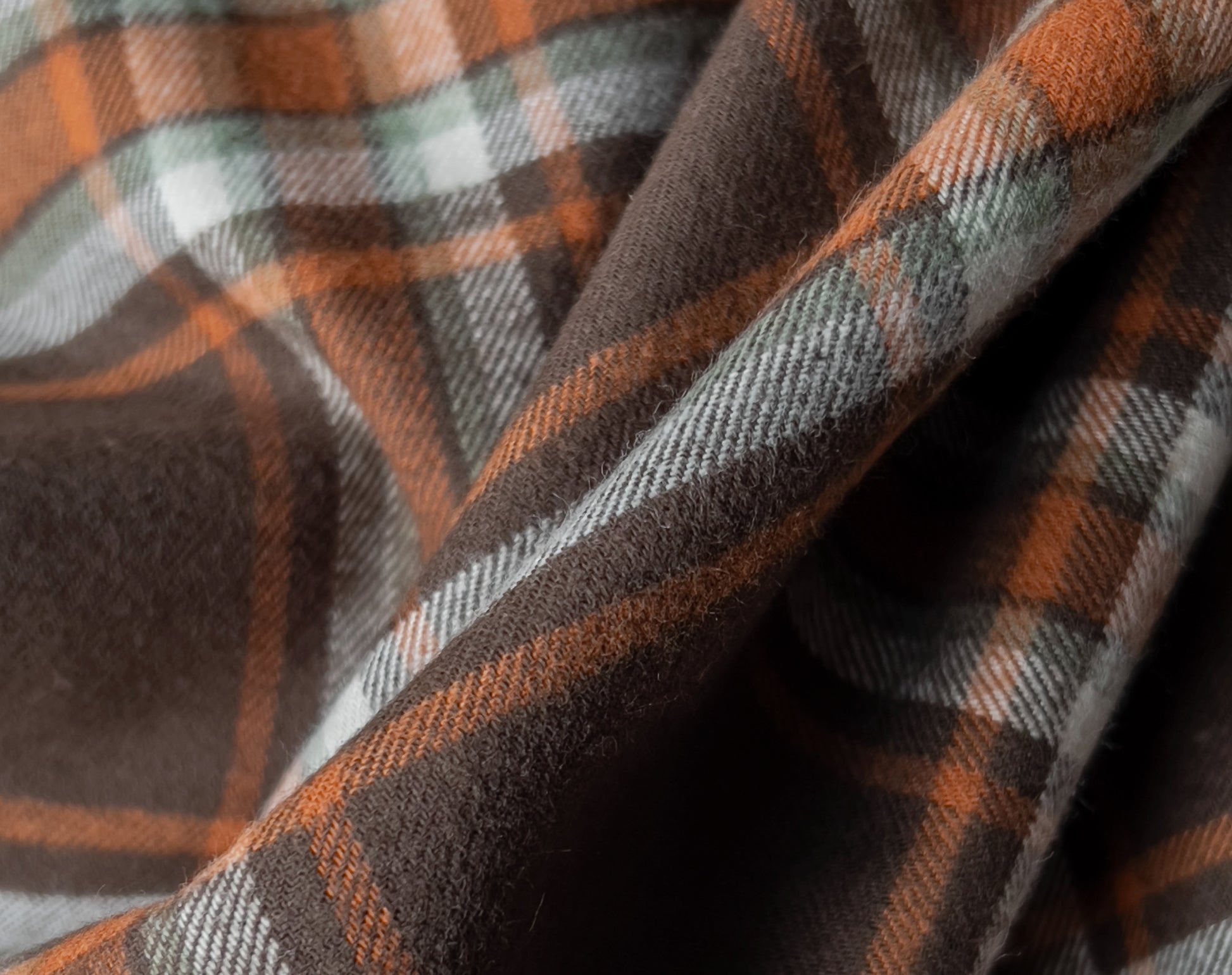 We are always on the lookout for great flannel, plaid is a firm favourite at Faberwood. We've stocked many of the American Mammoth flannels over the years, but this is an exquisite Japanese lighter-weight flannel. Brushed on one side it has a cozy lived-in feel, ready to be made into tops, shirts, or our choice - a beautiful dress. The brown is a lush chocolate shade contrasting nicely with the rust orange check and just a hint of sage green. All lovely, mellow tones.