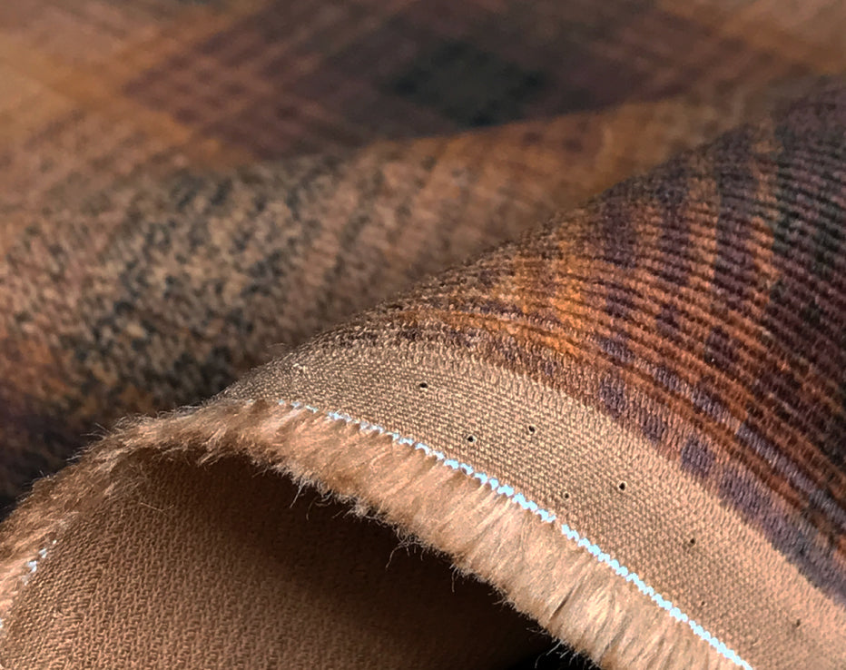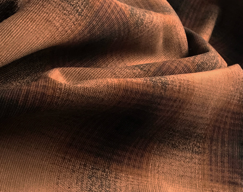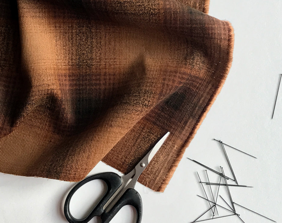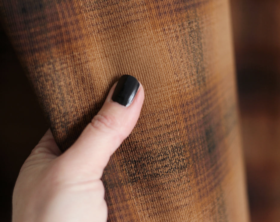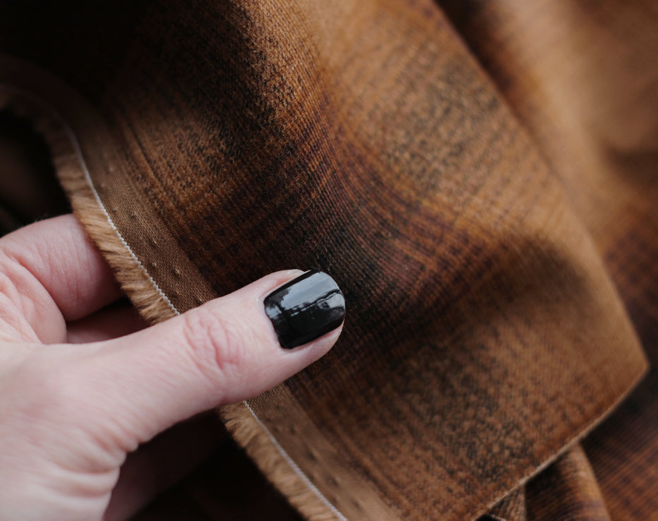 A really special and interesting cotton cord imported from Japan. Featuring a subtle plaid check design, perfect for Autumn sewing! Defined as baby 'wale' cord, it is so fine it feels quite delicate and soft. I think there's a touch of retro with these warming browns and the rust overtones, the natural light lifts out the beautiful hues. Every time I receive a Japanese fabric I'm in awe of the precision and textile design perfection.