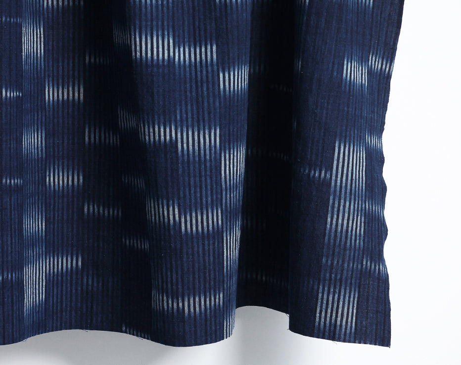 Sora is a soft but sturdy-feeling medium weight, it has drape and is not stiff. This staggered design is laid in by hand during the weaving process using a thick tie and dye technique forming a modern pattern. This would be perfect for a light summer jacket or a shirt and would also make dresses requiring a little bit of structure. The skilled precision weaving creates a consistent surface throughout that will make unique, very high-end clothing.
