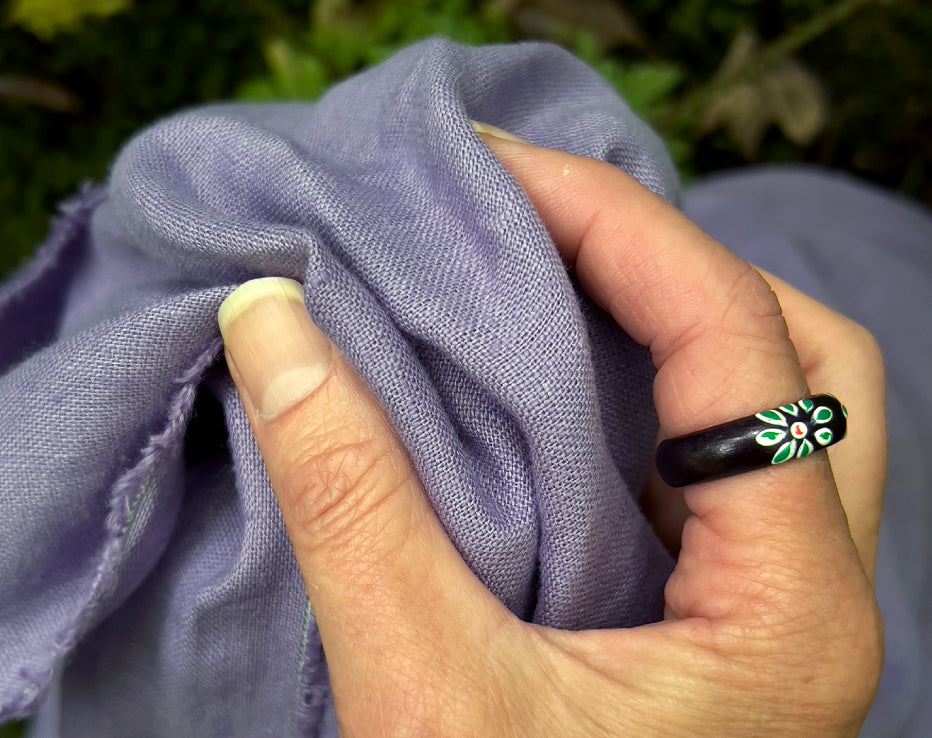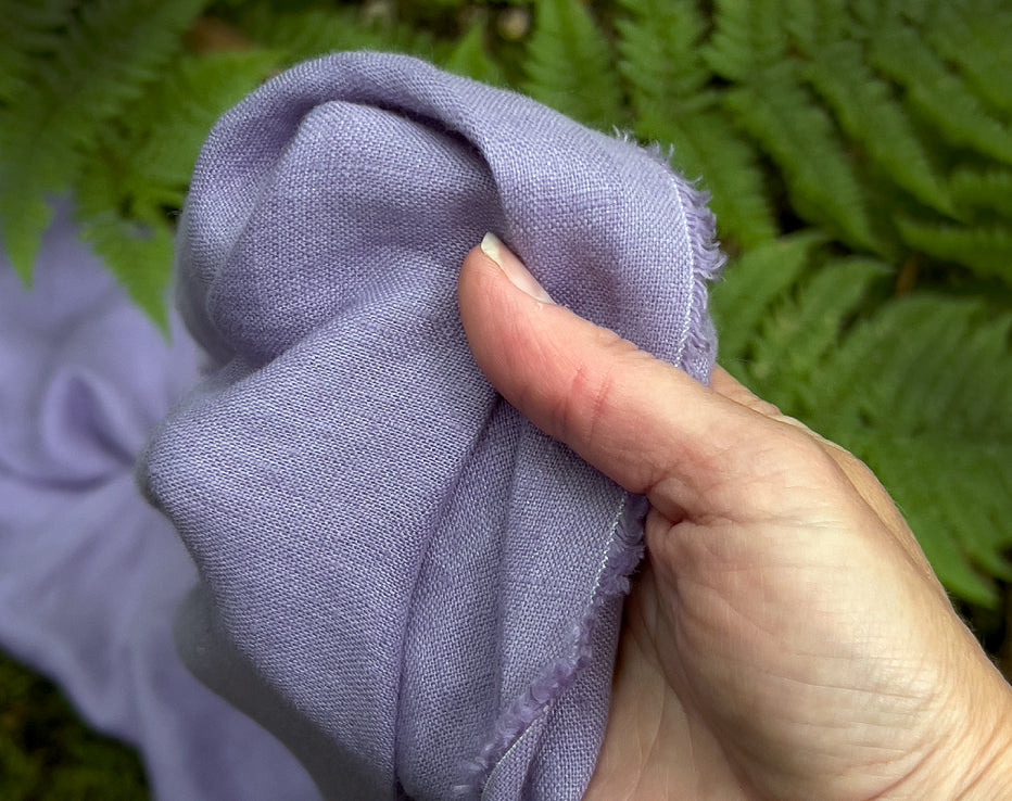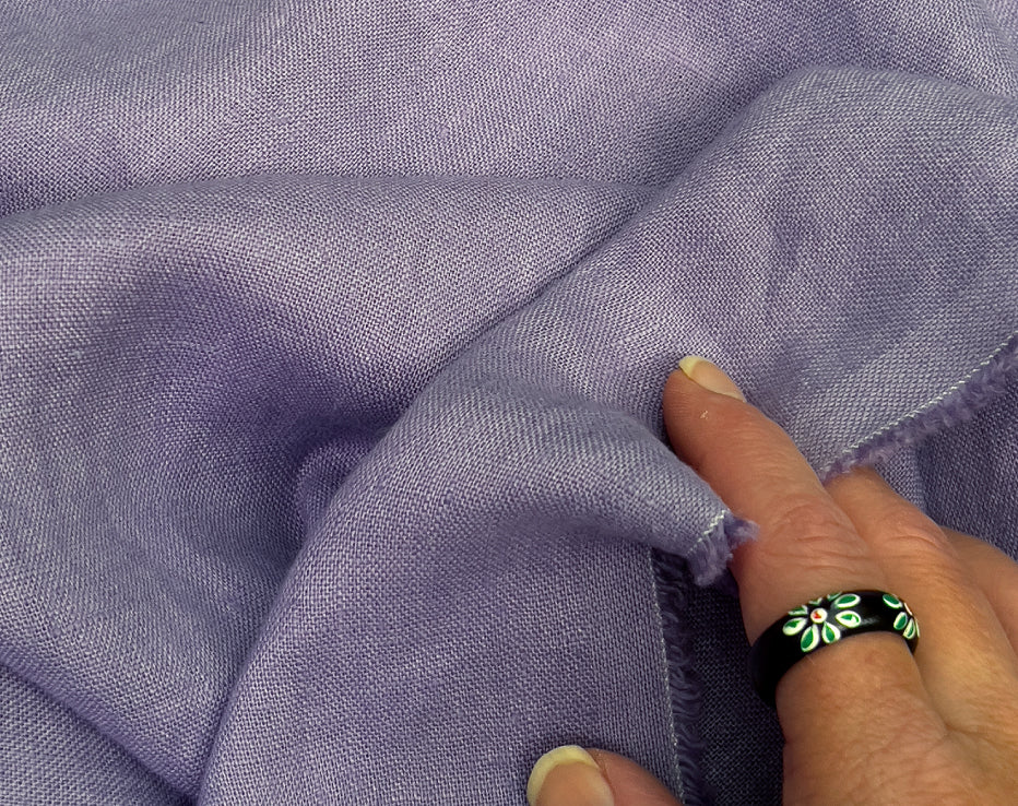 Good European laundered, or pre-washed linen is getting harder to find in the UK, especially in more varied colours. This, my daughter says, reminds her of Parma Violet sweets. Pure linen is expensive (thanks Brexit) and I am seeing so many 'blends' but, for me, nothing beats the feel of the real thing. I like how it's ageless and it 'customises' over time to your own body and style. Worth the effort, hope you will enjoy it!
