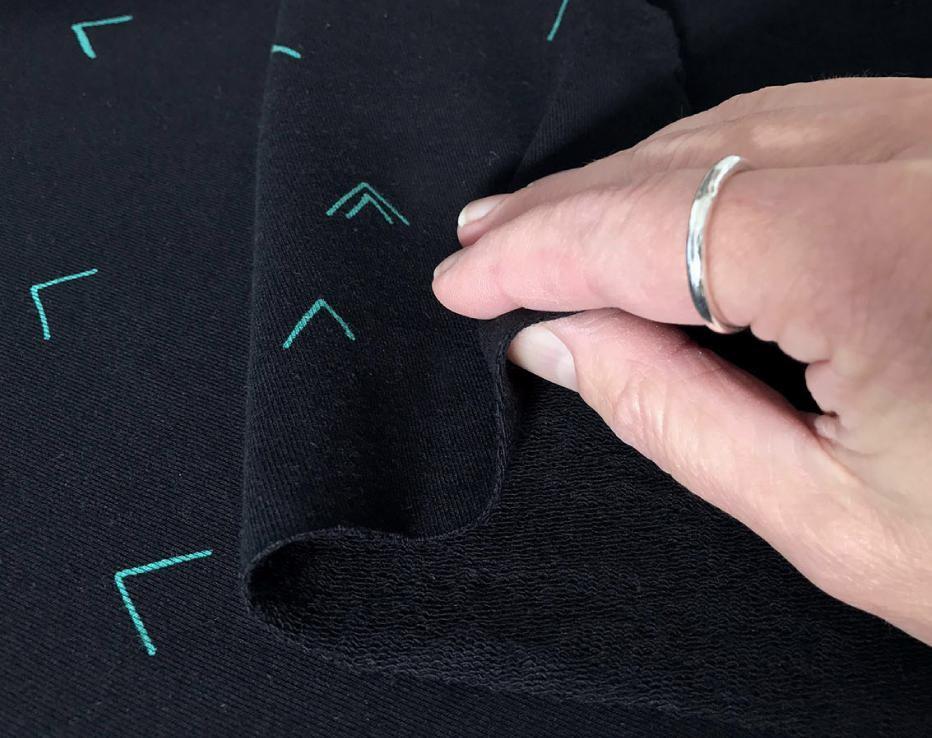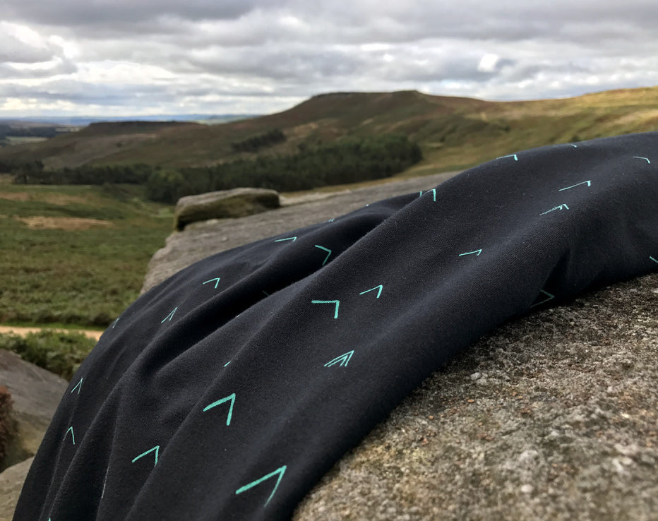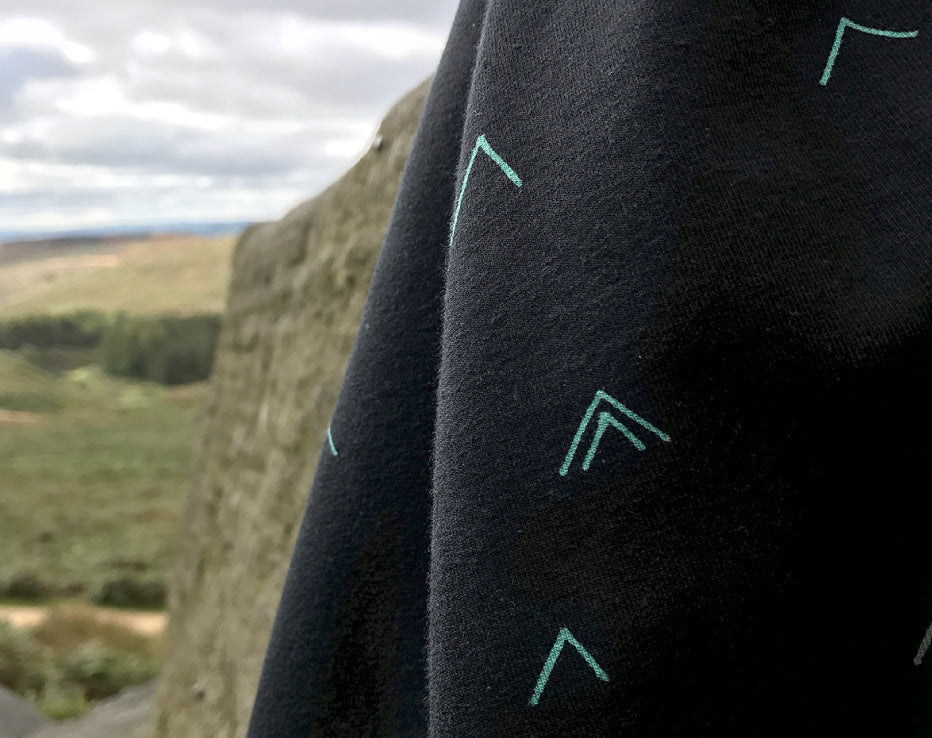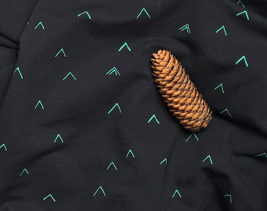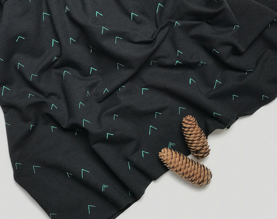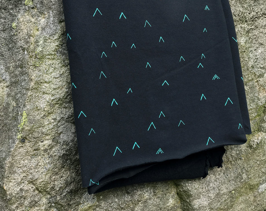 The outdoors meets fabric, how perfect for Faberwood! On first spotting this fabric I thought these were 'mountains' but the translation is 'tents' and it's a sweatshirt so it's even better! Papu Stories of Finland is another welcome addition to our collection, I just love it every time I discover these wonderful brands. Plus, I'm consistently trying to find good quality sweatshirt and this black weighty one is the best. Nice and simple aqua blue geo print, this stretchy fabric will look great on anyone, it's just lovely. Now I'm dreaming of those wonderful sweatshirts!