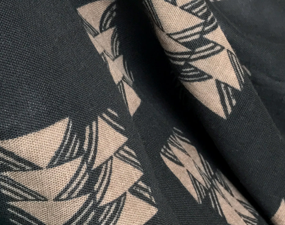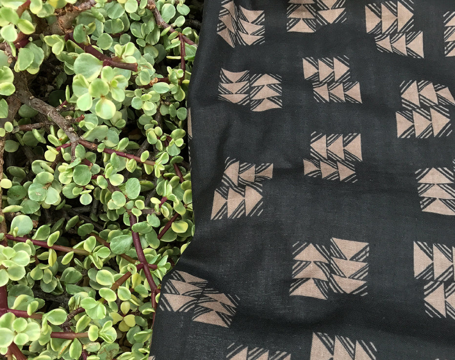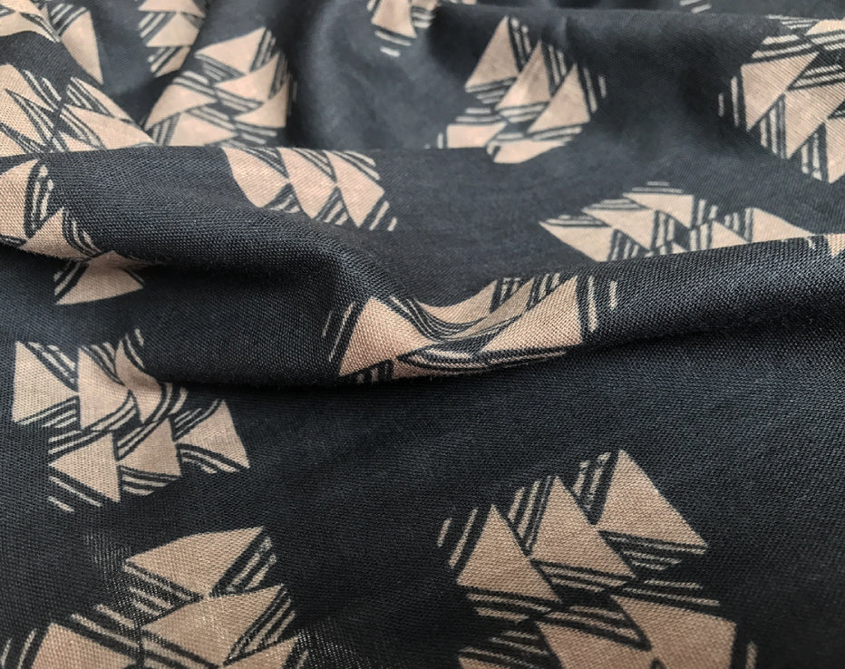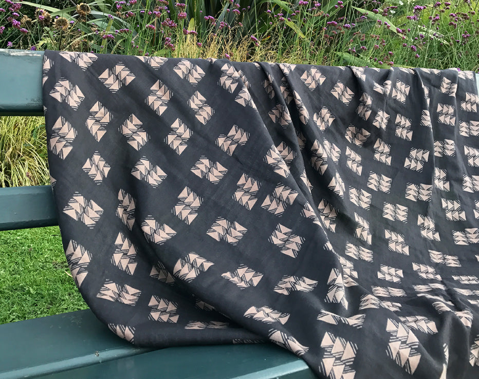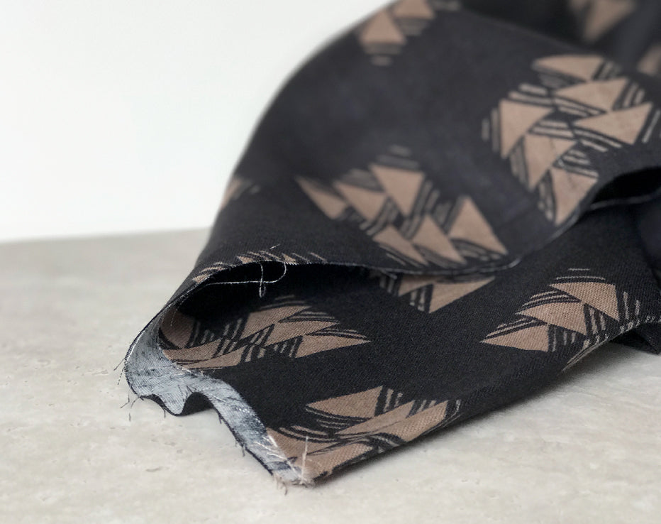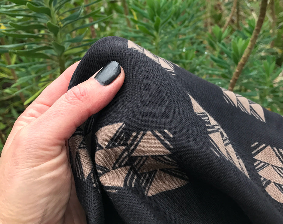 My typical admiration for the classic geometric print! More of this wonderful double gauze cotton, imported from Japan. I particularly love the way the colour of this fabric has the overall shade running through it. The black cotton has a hint of natural brown giving a burnt charcoal tone which contrasts well with tan coloured detail. The design reminds me of a traditional style block print, yet it's very modern, plus it has a fabulous pattern repeat that. In my opinion, Ellen Baker is an absolute star for achieving this! It will make great tops and tunics, or skirts and dresses. There are lots of options with these shades, placing this one firmly in my makes list for Autumn and beyond, what's not to love?!