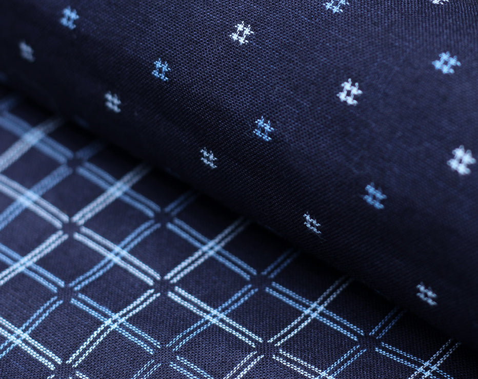 We have managed to acquire some beautiful fabrics from Thailand recently and I could not resist this luxurious 100% cotton that is double-faced. I find this so unusual I had just had to add it to our collection. This is two layers of indigo-dyed fabric stitched together and you can choose to use either side. Sourced from an expert denim supplier who has a close connection with textile mills in Japan and Thailand. I think this was originally produced for high-end shirt making. I love the geometric mini ikat design backed by an interesting woven check. These mills supply exclusive clothing brands that specialise in authentic styles, dedicated to timeless style.
