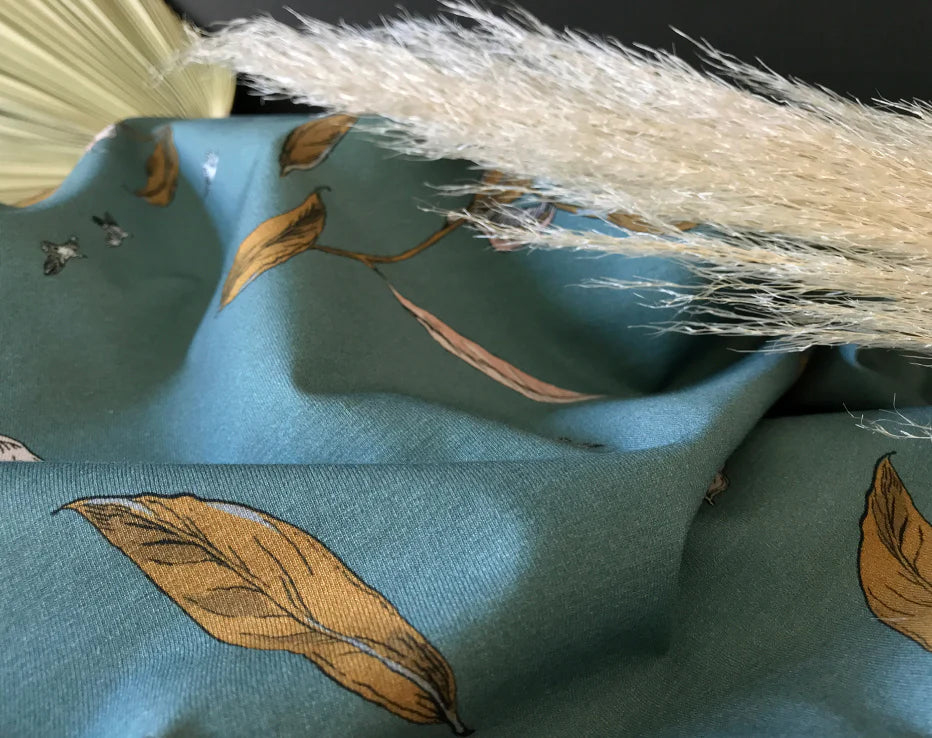 Just cast your eyes on this colour and absorb for a while... It looks like nature's dream cascading over artistic lushness! The combination of real art on fabric and the hand-drawn attention to detail is stunning, such a unique Finland style. I love the teal blue combined with mustard (and the pretty pastel tones thrown in). I can talk about this one non-stop! A tunic style top would be nice or a dress, I even think you could make something designed for wovens, just because it's a stretch doesn't mean you're restricted to tees!