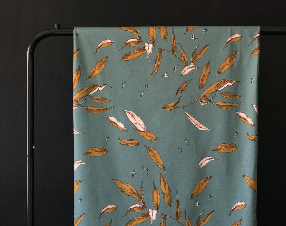 Hopeapaju means 'Silver Willow' drawn by artist Satu Kontinen and is part of the 'Autumn Exodus' collection. This super high quality knit has just the right amount of elastane added to give a good smooth elastic jersey. This fabric feels as good as it looks, there is a distinct softness with a slightly glossy feel. There's no doubt this will create fabulous clothes you'll want to stroke and it also has a fab wide width. Plus, have faith in sewing with this stretch knit, the well-made quality and strong structure is a dream to stitch. Here you can make something so simple and let the unusual design shine!
