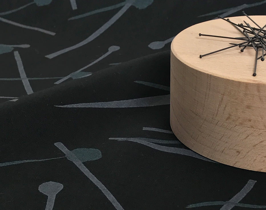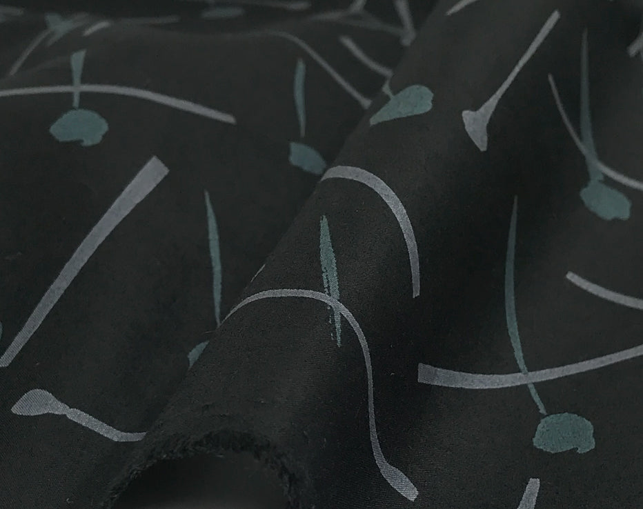 This fabric from Japan is a graphical delight to my eyes! Designed for Kokka by Sato Asami I'm just swooning over this, the tones, the design, everything! This crisp clean print is a 100% cotton lawn with a beautiful feel and slight sheen. These teal shades on a black tone keep this print subtle and elegant. This would be fabulous for shirts and tops, or dresses. It is lightweight and great for Spring and Summer, never be disappointed with any fabric that comes from Japan, you just know you are getting a unique design every time.