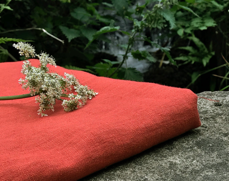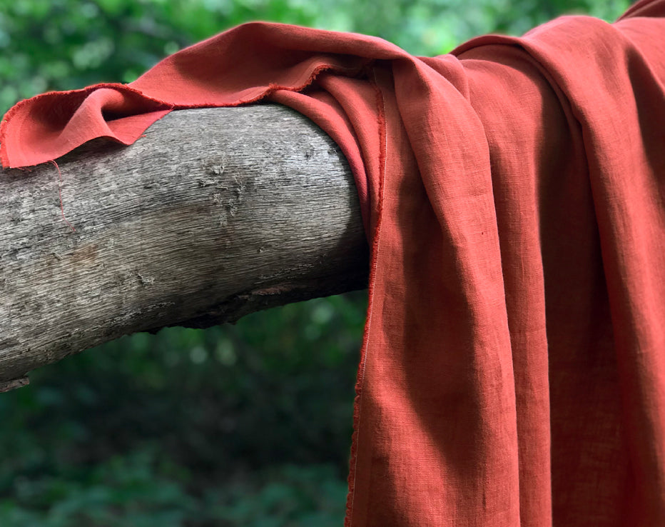 I have been searching for a linen in a rust colour, wanting to veer away from the greys and blues that are so available. I was surprised at how difficult it was to find eventually sourcing this gorgeous one from Lithuania. Made from flax fibre, this is a washed and softened linen, like a 'laundered' style. Produced with eco friendly dyes to an Oekotex standard, meaning free of chemicals. It's a beautiful weight for summer making, nice and floppy and I'm actually sewing this up into a summer vest top while I write this. It's a gorgeous rich shade a bit like a paprika spice, or burnt orange. This will look great with more wash and wear, love the beautiful features you get with linen fabric!