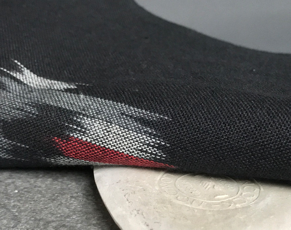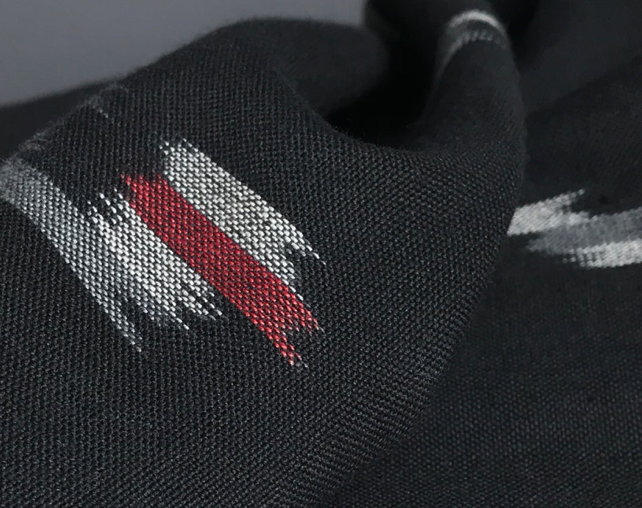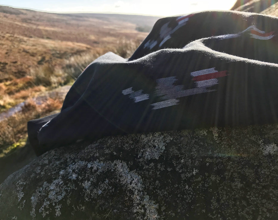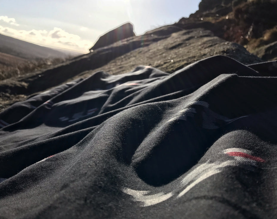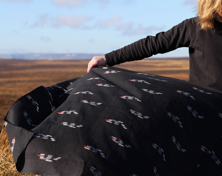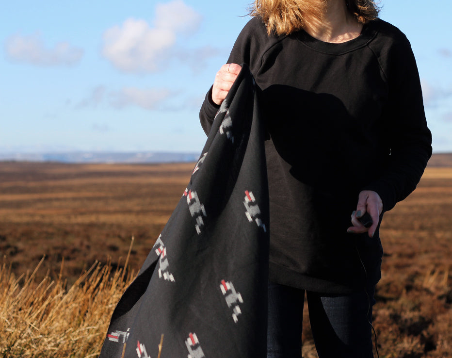 This is a Faberwood exclusive fabric, part of the 'Edge' collection designed by us! This Ikat design is inspired by the landscape of Sheffield's grit and sandstone uplands known as 'edges'. Produced by our supplier in India on handlooms, they've just matched my imagination and I can't explain how much of a buzz I get from this! This is a light/medium weight untreated cloth with a 'washed' type of black base with simple shades of white, grey and 'rusty' pink woven in the design. I wanted the colours to represent the ever changing tones of the Peak District and combine them within a spacious design. Stanage edge is the nearest and most well known edge to us, often frequented by climbers it always has a great friendly vibe.