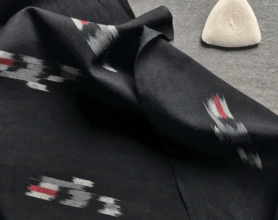 The thing I love most about Ikat weaving is the texture it creates within the design, it feels earthy and no two metres are exactly the same. Expect little imperfections in this type of cloth, it's soft, natural and makes fabulous clothes for anytime of year. Also, there are no rules applying to the direction of the grainline, use this fabric anyway you like. You can even combine it with the rest of 'Edge' range I designed too. Happy sewing days ahead!