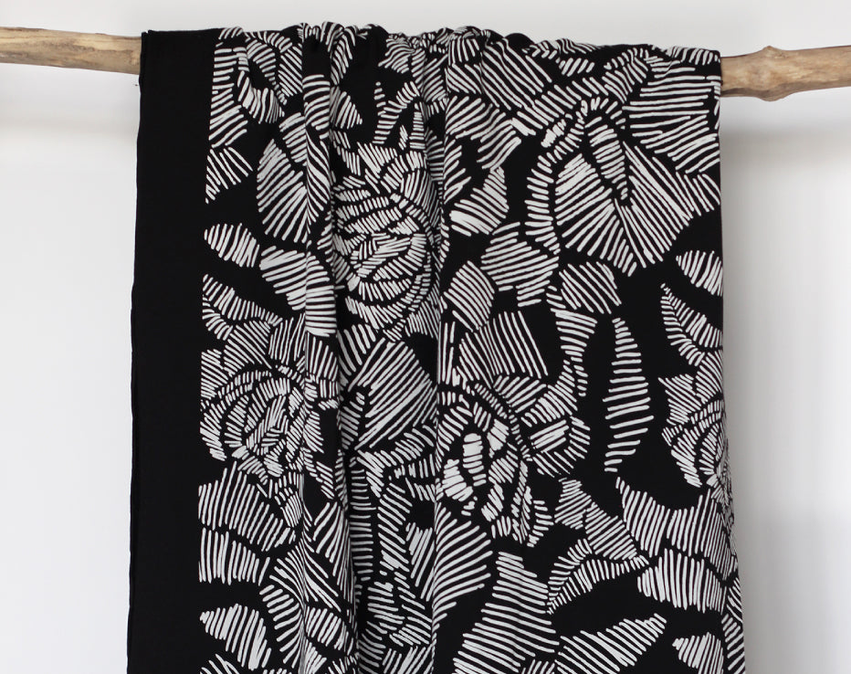 A four-way stretch sweatshirt knit featuring a beautiful rose design, I love this simple monochrome '