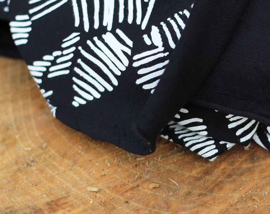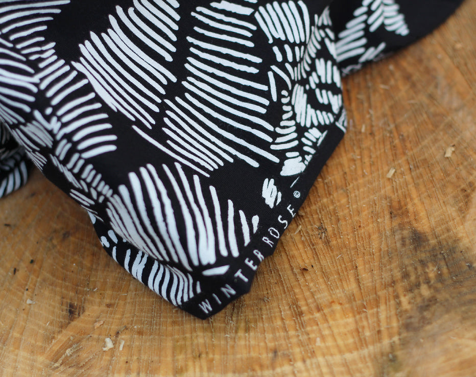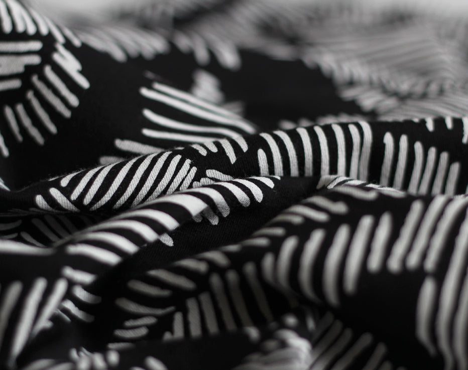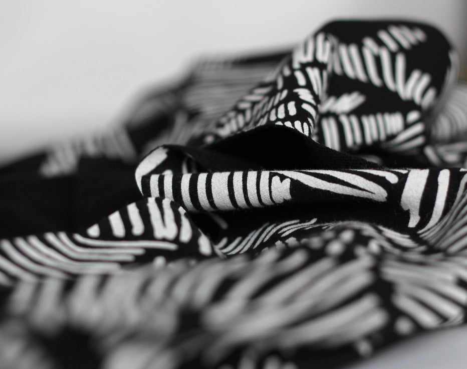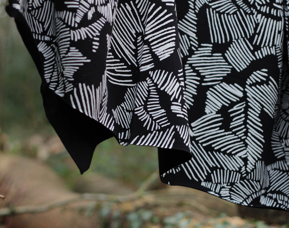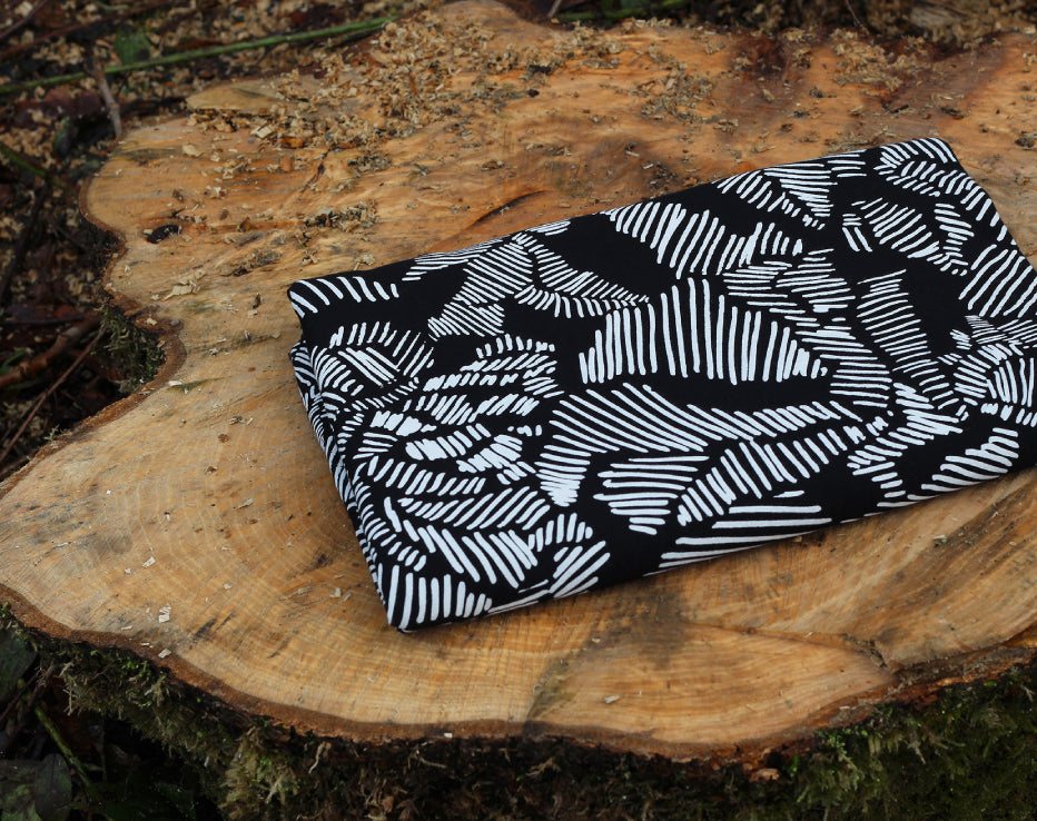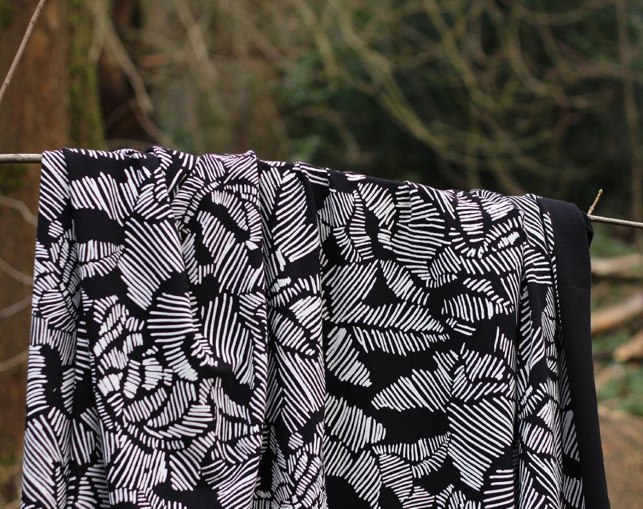 Scandi' style, it does the job of cool and sophisticated while being casual. The soft feel of this is perfect for loungewear and sweatshirts and it has just the right amount of spandex so it will not stretch out and will be a very pleasant sew. A brilliant bold design fresh from Belgium, what you see is what you get here. All you need to do is grab some black thread along with a solid black cuffing and away you go! I can totally see how this would look made up. Something adventurous and interesting but still very cool, oh how that Linden sewing pattern is once again calling!